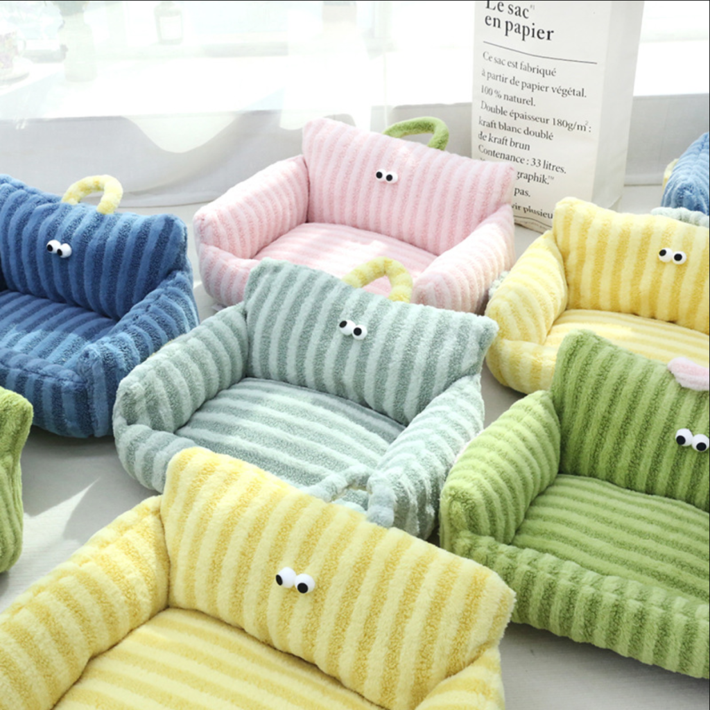 网红大眼系狗窝猫窝条纹沙发造型窝马卡龙宠物窝可提窝中小型犬猫